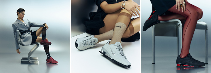 • Nike Shox : reconnaissable entre mille grâce à ses colonnes d’amorti visibles sous le talon, la Nike Shox symbolise l’innovation des années 2000. Son style audacieux et son rebond dynamique en font une paire à part dans l’univers sneakers.